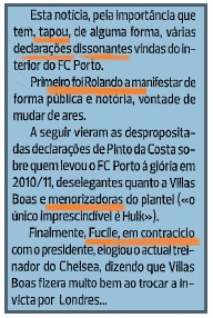 se dúvidas houver da azia que reina lá pela Travessa da Queimada, o sr. "jornalista" antónio casanova dissipa-as na seguinte peça, que para além do texto em si e do «futuro do sul-americano [que] ficará seguramente definido nos próximos dias», presenteia os leitores portistas com um subtítulo auspicioso: