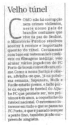 - o fora-de-jogo (nada bonzinho) "play!", da autoria de João Mauzinho, publicado no mesmo pasquim a 14 de Outubro (Sexta-feira) - com especial destaque para a citação de José Mourinho;