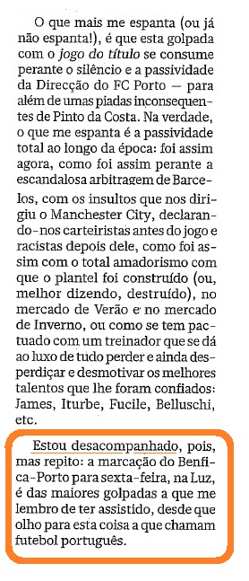 a) a opinião de Jorge Maia em "o Clássico começou a jogar-se ontem", publicada na edição de OJOGO a 25 de Fevereiro;