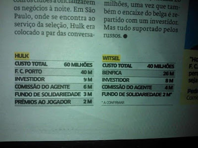 é que, na minha terra, 26 milhões de euros não são «40 milhões a pronto», muito menos «42 milhões de euros: 40M€ a pronto e 2M€ pelos direitos de formação do jogador belga» conforme é afirmado na peça jornalística em causa - e tendo em linha de conta que este último valor foi suportado, na íntegra, pelo clube russo, tal e qual como aconteceu na transferência do Incrível...