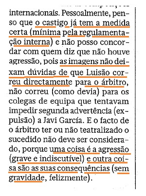 enfim... são uns tristes - tal como o ex-árbitro cruz dos santos, no seu mais recente artigo "palavras exemplares", quando dá "uma no cravo e outra na ferradura", (in)tentando desculpabilizar o injustificável: