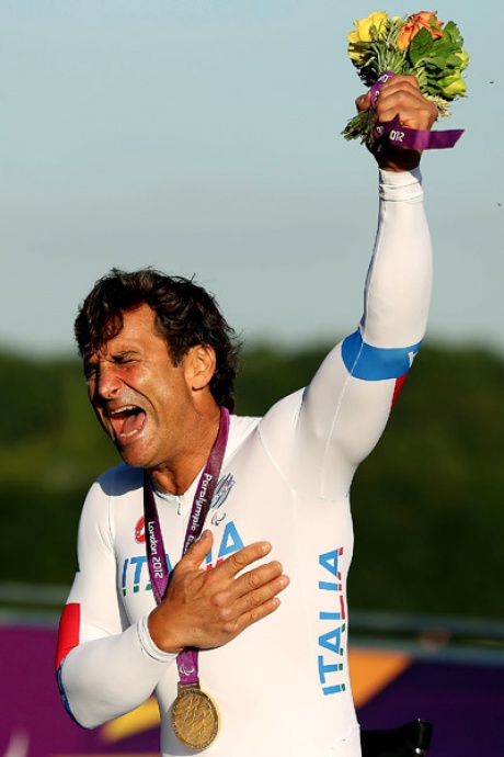 « no circuito de Brands Hatch, o italiano, de 45 anos, completou a distância de 16 quilómetros em 24.50,22 minutos e foi 27 segundos mais rápido do que o alemão Norbert Mosandl, medalha de prata com 25.17,40, e 45 segundos do que o norte-americano Oscar Sanchez, que fechou o pódio com o tempo de 25.35,26. » (fonte: expresso.sapo.pt)