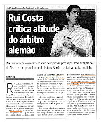 « vou esperar sentado por uma punição exemplar a quem de Direito. aliás, vou esperar deitado sequer por uma punição digna desse nome e que respeite o actual Regulamento Disciplinar da FPF, nomeadamente o disposto nos quatro pontos que compõem o seu art. 108º [pág. 21]. é que, exemplos não faltam sobre a impunidade de que goza esse clube dito «glorioso» »