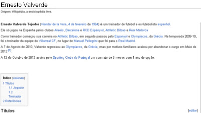 versão portuguesa da enciclopédia livre, disponível online, anunciou que o treinador espanhol assinou pelos leões. entretanto a informação foi editada.