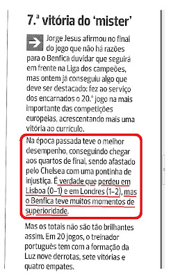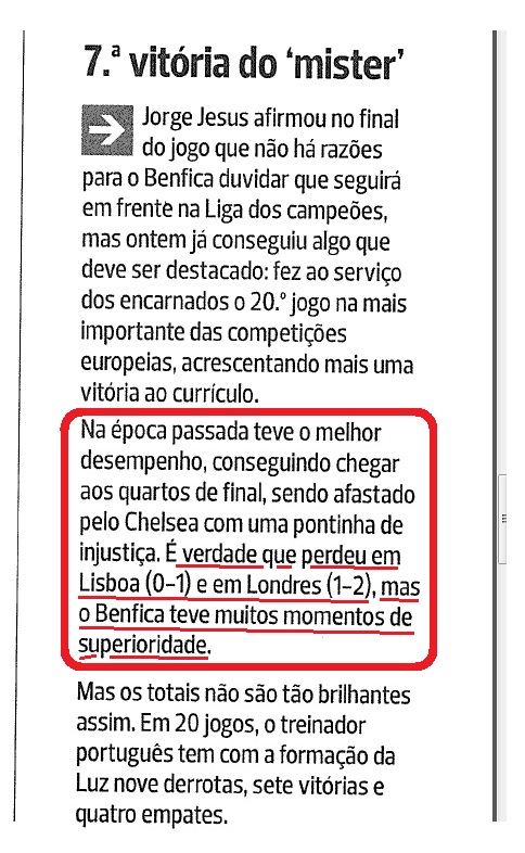os coisinhos dos lampiões almejaram alcançar a sua primeira vitória na actual edição da Champions, motivo mais do que suficiente para haver algazarra (e talvez champanhe?) na redacção do pasquim em causa. se não acreditas, atente-se no que retive da resenha da quarta jornada da competição de clubes mais vista no Mundo, pela pena de luís filipe simões: