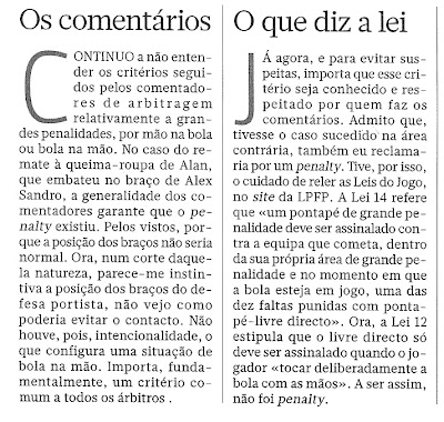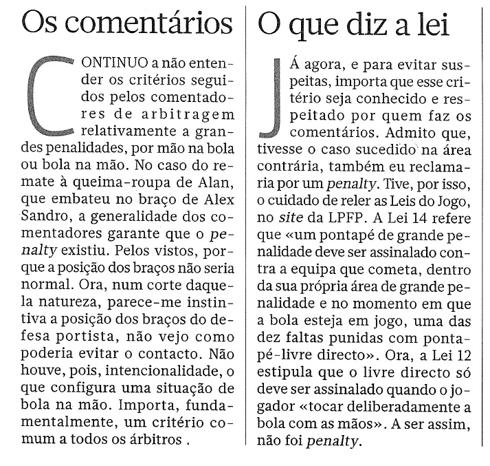 também sou daqueles que acredita que não haja um único jornalista desportivo que não tenha o seu clube do coração, levando-o até a exultar de alegria com a marcação de um golo fulcral no último suspiro da partida, em directo, num programa de televisão onde se supunha que a Isenção era a tónica dominante e numa estação (cada vez menos) pública de televisão.