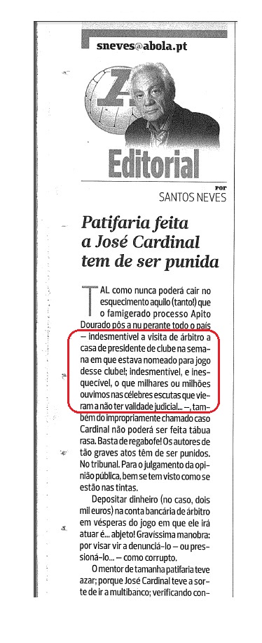 atente-se no que escreveu santos neves, no seu editorial "patifaria feita a José Cardinal tem de ser punida":