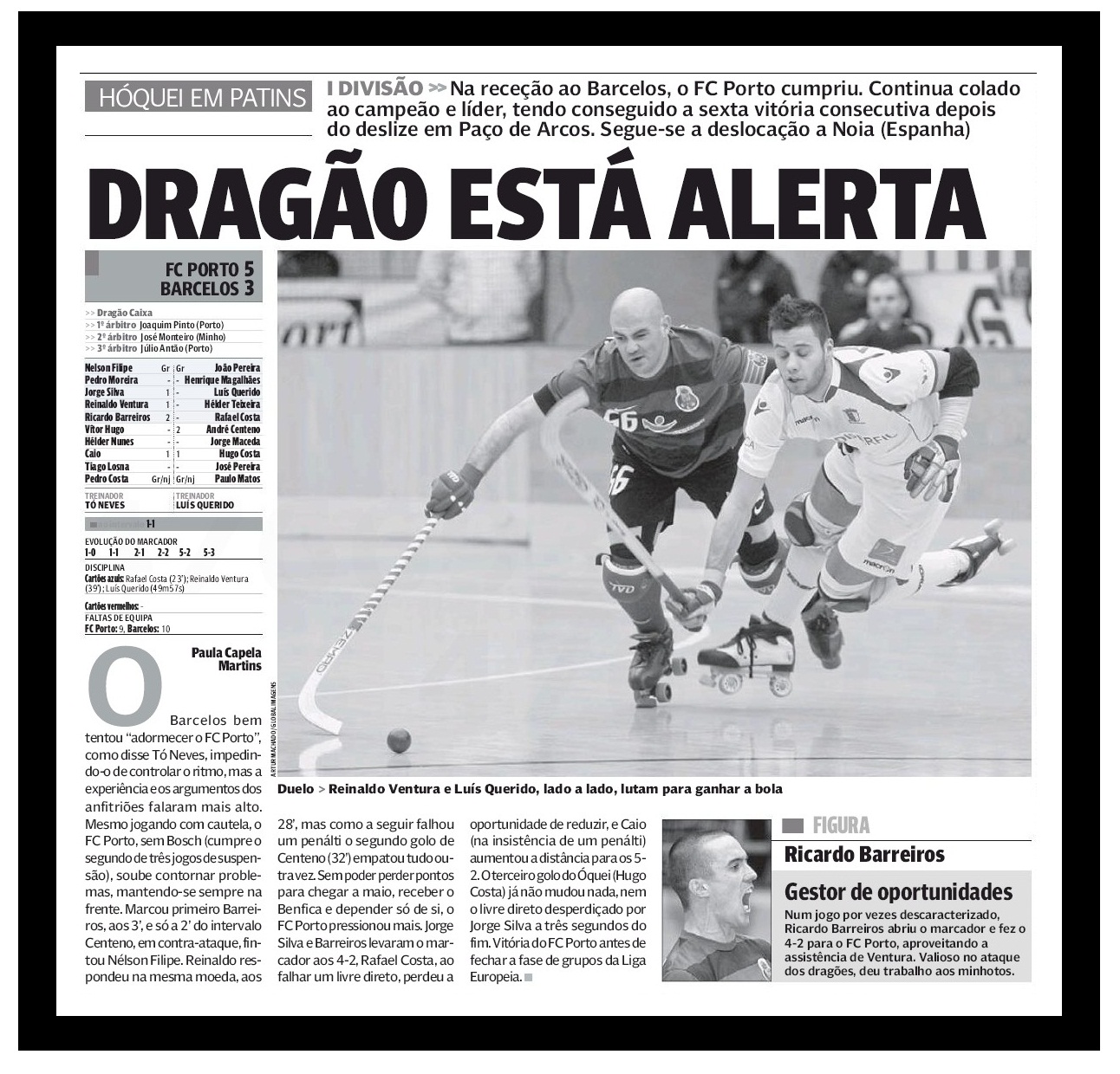 para lá da capa acima, onde lanço o desafio de conseguires encontrar a referência ao nosso clube do coração; da muito risível notícia "os segredos de jeBus", da autoria de fernando urbano, e consequente editorial "o Saber e o Conhecer não têm fronteiras" (da autoria do belenense vítor serpa); dos artigos de opinião "daqui até ao Dragão" (do nosso enfant terrible, Miguel Sousa Tavares, na sua rubrica habitual "NORTADA"), e do "da bola obediente" (de António Simões, na sua coluna de opinião regular COM A BOLA, OU TALVEZ NÃO); do dossier dedicado ao FC Porto (que "vale" pelo seu todo); do resumo ao encontro dos Vitórias, ontem, no Estádio do Bonfim (com o meu posterior desafio de (in)tentares encontrar algo sobre a expulsão do guarda-redes vitoriano que o tivesse justificado de facto), e consequente análise à nossa Liguinha, à 22ª jornada, talvez recomende a leitura atenta à ultima guerrinha do sr. fernando guerra, sob o título "primeiro, o título", por ser ilustrativa dessa lampiónica bazófia arrogante (porque perene de uma «gloriosa» Soberba) que já se (pres)sente lá para os lados de Carnide: