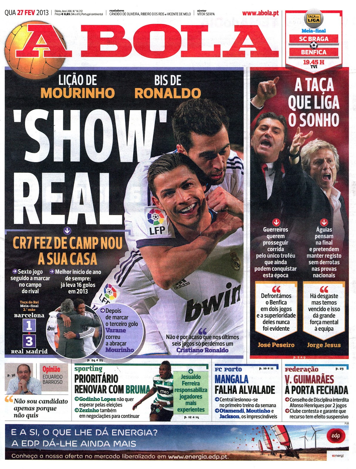 para lá do novamente abjecto (porque provocador) editorial "que grande lição de humildade deu Jesualdo!" (da autoria... exacto!, de fernando guerra); dos artigos de opinião "o Futebol é um lugar estranho" (de rogério azevedo), "a ausência dos ex-leões" (da autoria do sr. Carlos-que-tem-um-apelido-de-substantivo-colectivo-para-o-que-ele-é) e "que horas são [memórias da Taça do Rei]" (de Paulo Futre), obviamente que recomendo a leitura atenta do dossier sobre o rescaldo do clássico ante o zmerding (porque sim!, e apesar das declarações de Vítor Pereira, das contas da SAD portista, das declarações de El Comandante e do seu recadito a Iturbe e do artigo sobre a sua «ostentação», e do contraditório às declarações do sr. varandas).