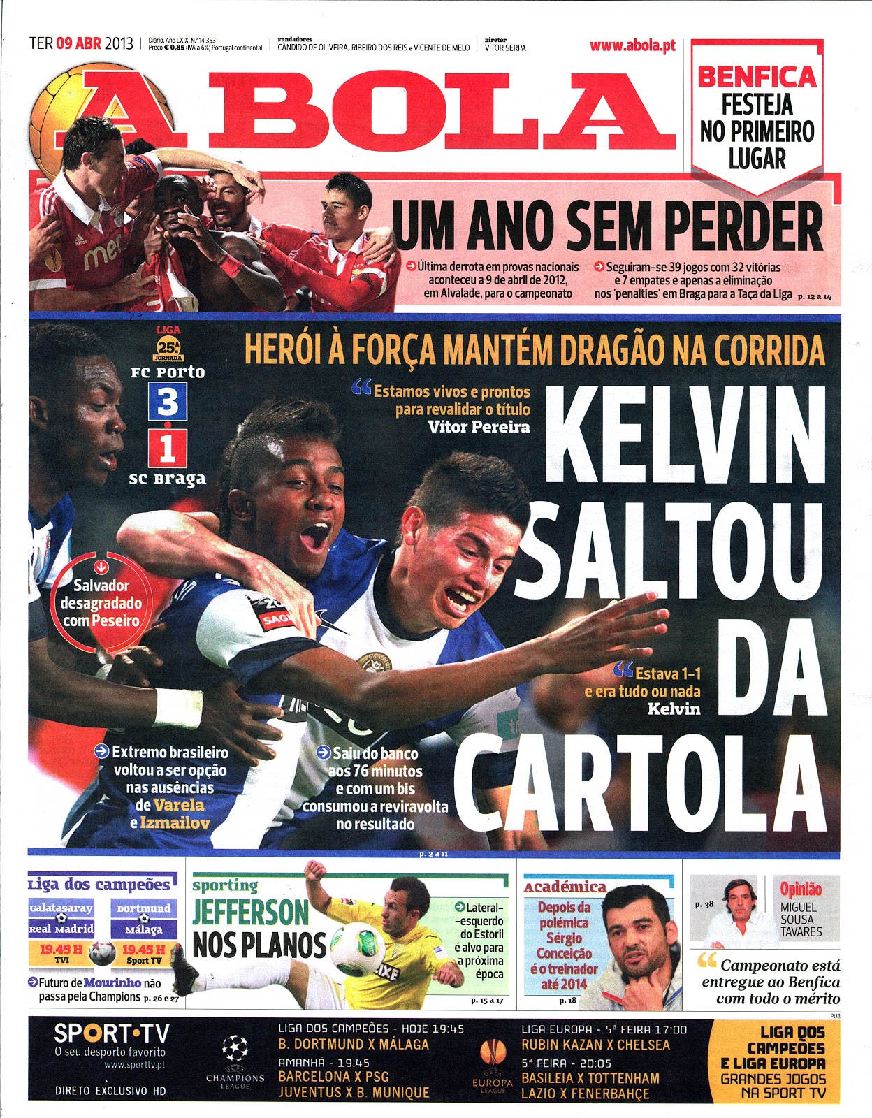 com a vitória de ontem e com a resposta dada pelos nossos jogadores a uma «certa e determinada» "onda encOrnada" deste último final-de-semana, a pressão - a famigerada pressão... - regressou à origem.assim, como atenuá-la? a redacção do pasquim em causa contornou a questão com o destaque que acima se evidencia e com a colaboração de nuno reis na redacção deste coiso...