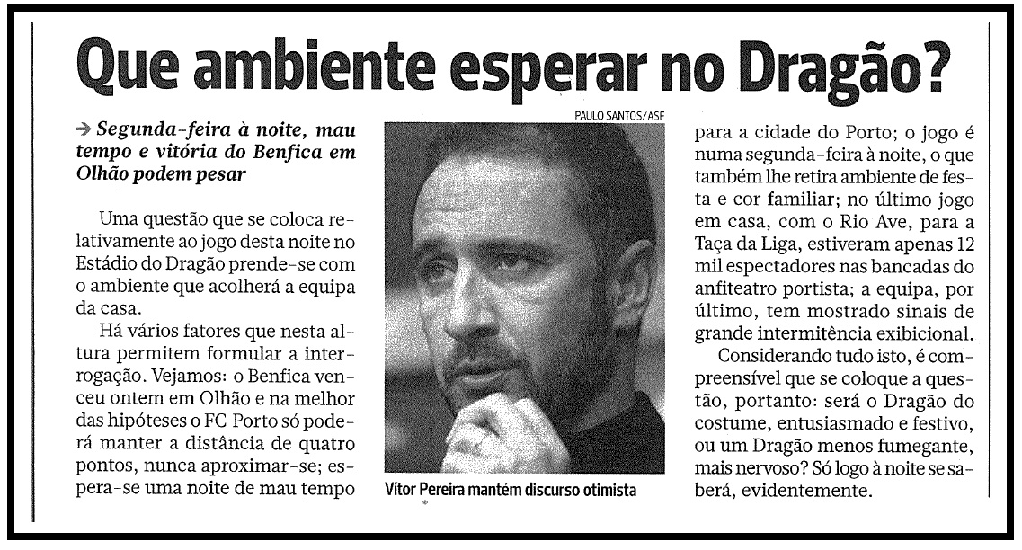 depois e para lá da capa acima (muito "engraçada", por sinal), a qual se intercala com o artigo de nuno perestrelo "já se vê nascer um sorriso no ex-estádio da Lucy" e com do editorial "jeBus disse que vencia e... acertou!" (a última guerrinha da autoria do sr. fernando); do artigo de opinião "o alargamento que encalhou o Futebol" (o último excremento (do) Delgado mas com o qual concordo), e do seu muito risível apelo às forças de segurança nacionais para que encontrem o famigerado computador portátil que desapareceu da sede da FPF («já lá vão oito semanas... e nada!»), talvez recomende a leitura atenta do excerto que se segue, incluso no dossier dedicado ao FC Porto, de um artigo assinado pelo sr. carlos-com-apelido-de-substantivo-colectivo-para-o-que-ele-é: