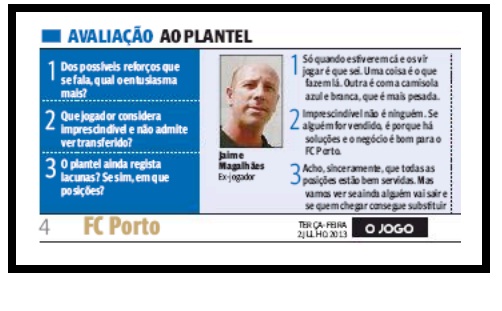 para finalizar, eis três opiniões de uma antiga glória dos nossos quadros, que também encarna o "ser Porto", que os comentadores estrangeiros - mas aqueles que residem nesse "imenso país que é o Estrangeiro"® e não na esmagadora "paisagem centralizada"® deste "rectângulo à beira-mar (im)plantado"® - sempre sentiram dificuldades em pronunciar, e com as quais corroboro na íntegra - sobretudo por encarnarem o "tal" espírito positivo e positivista com que se deve encarar o nosso clube:
