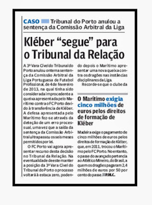 que eu saiba e não sou jurista, um «erro processual» não é sinónimo de se considerar procedente a argumentação invocada pelo "clube do guardanapo da 'pérola do Atlântico'"® - o qual, recorde-se, já foi condenado pela FIFA, «ao pagamento de 2,53M€ ao Atlético Mineiro (Brasil), na sequência do "Caso Kléber", por incumprimento de acordo entre os clubes».