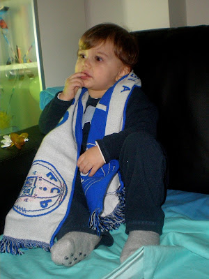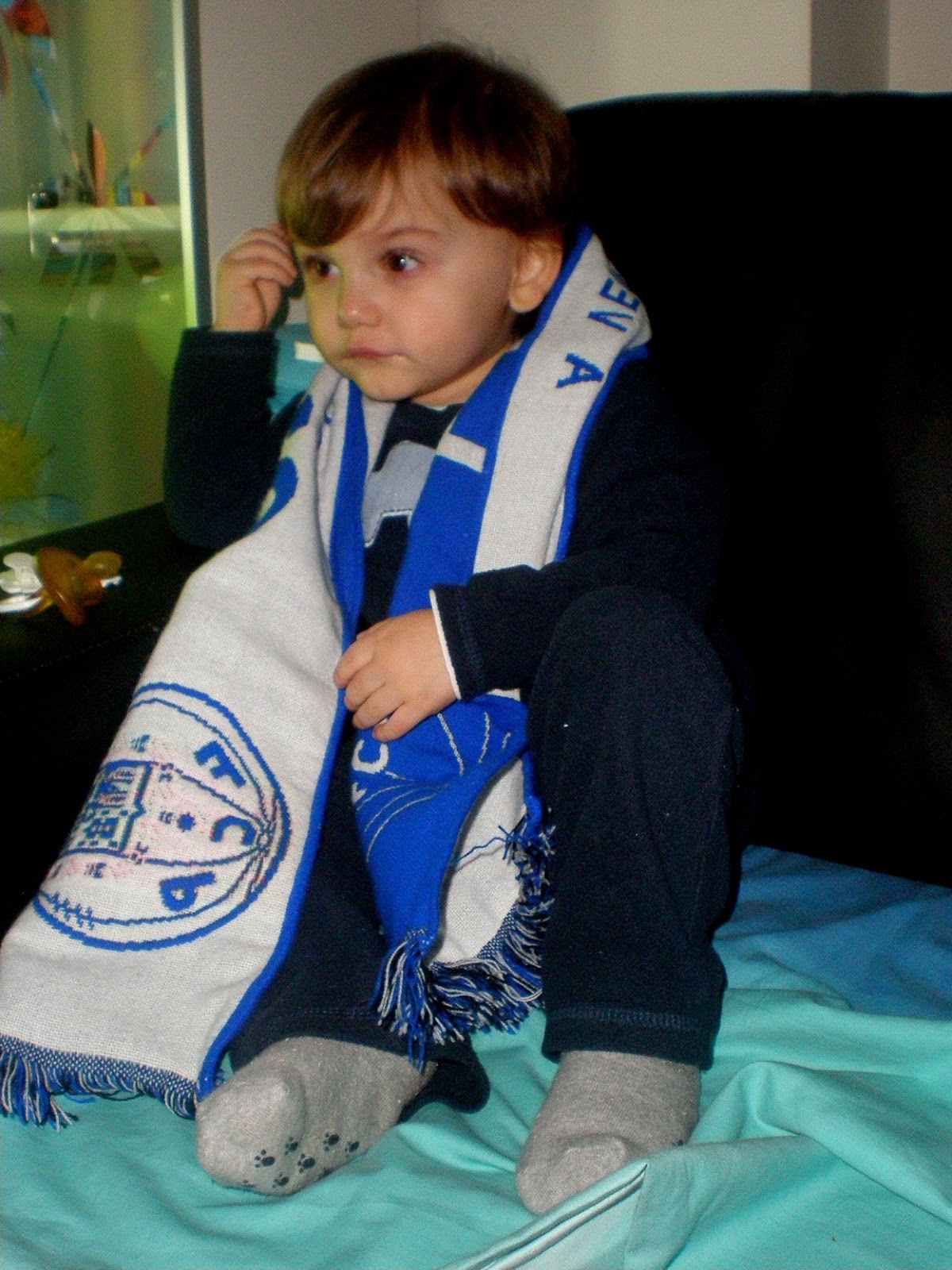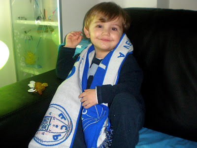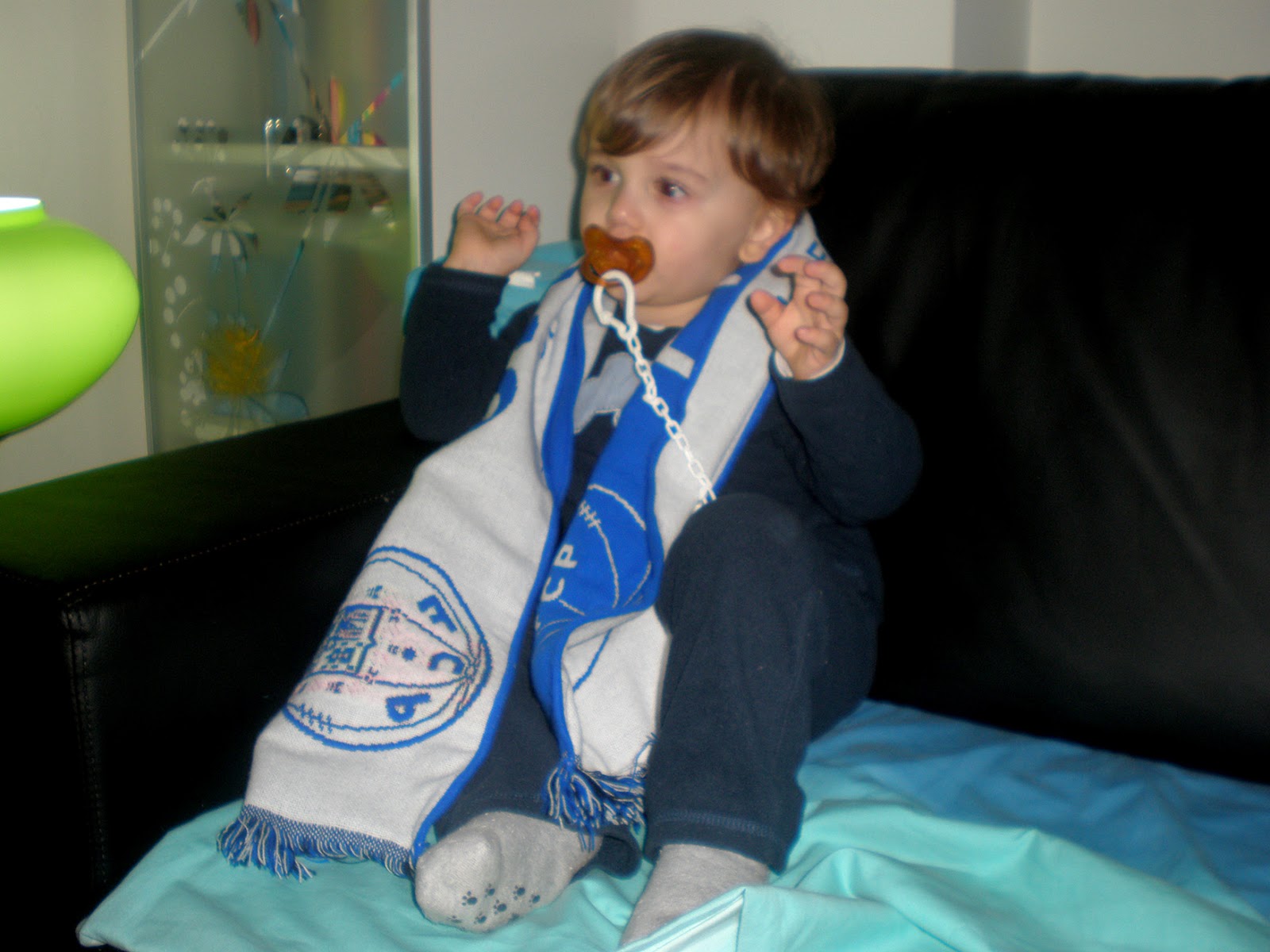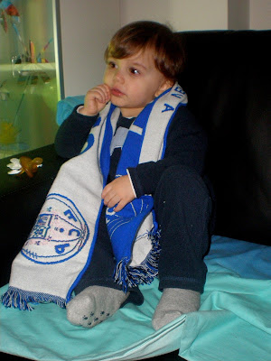antes e para tua informação, confirmo que as ditas imagens foram tiradas enquanto decorria o encontro de ontem, no reino dos viscondes falidos de Alvaláxia, para a "ex-taça da bjeka"®. e que não houve qualquer "manipulação photoshópica"® nas mesmas. e que, numa delas, a sua reacção foi espontânea ao remate do Ghilas. e que tirou o adereço, que pertence ao pai, por sua livre e espontânea vontade. e que, para ele, uma partida de futebol é o «goolho» e um golo é sinónimo de «Pooo'too». e que já não fica indiferente à melodia do hino do nosso clube, graças às noites e/ou madrugadas em que o embalei nos meus braços. e que é mesmo tudo verdade e que não estou a mentir e/ou deturpar factos e/ou inventar situações que não aconteceram - pois que posso ser tudo menos lampião e/ou calimero.