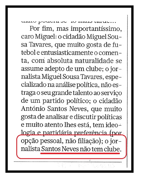 precisamente há um ano, a 10 de Janeiro de 2012, o "jornalista" (in)suspeito do pasquim da Travessa da Queimada santos neves, escreveu, num artigo de resposta ao nosso enfant terrible Miguel Sousa Tavares: