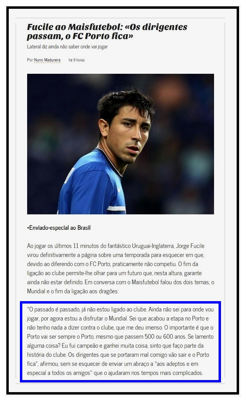 portanto e para que conste, para a redacção do pasquim em causa, Jorge Fucile, atleta profissional do FC Porto até 30 de Junho de 2014, apenas proferiu que «não fico no FC Porto e em Portugal também não. Onde vou jogar? Ainda não sei, agora estou a desfrutar o Mundial».
