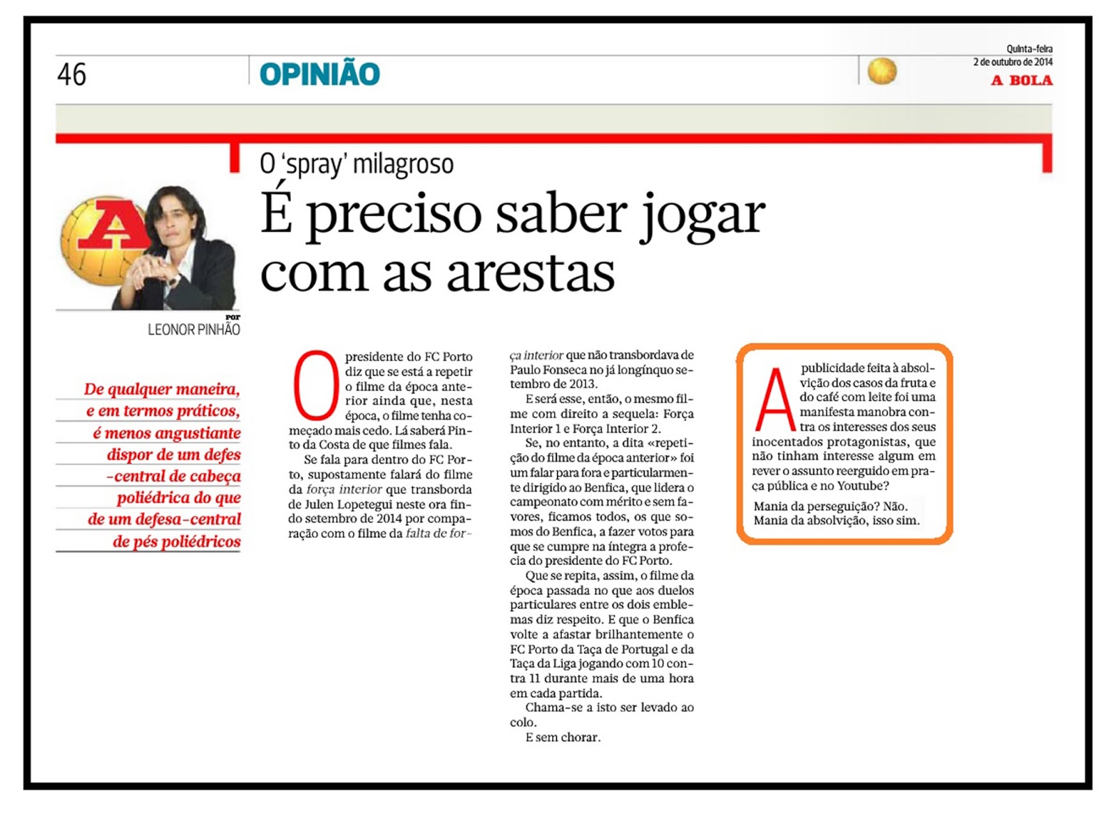 aquele "deserto" contempla, sobretudo, os escritos de joão (nada) bonzinho e dO coisa dO leonor pinhão, cujas (nojentas) referências ao nosso clube de Sempre merecem que lhes cresça um pinheiro (atravessado) onde o Sol não brilha por cada caractere utilizado. e no mínimo...