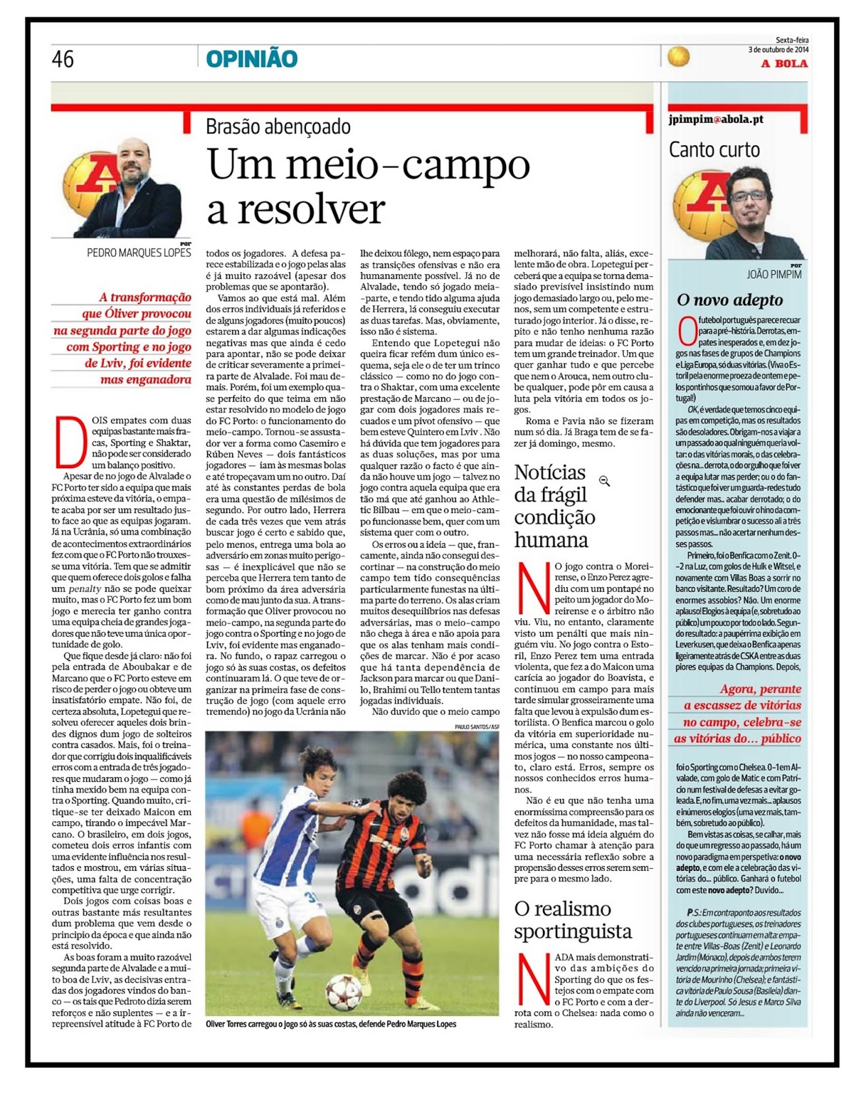 ainda sobre a partida ante o Shakhtar, acho curiosíssimo como a mensagem que passou e após se conhecerem os desaires dos clubes da Segunda Circular, é a de que o nosso FC Porto «tem fáceis adversários no seu grupo» e que «os adversários são acessíveis».