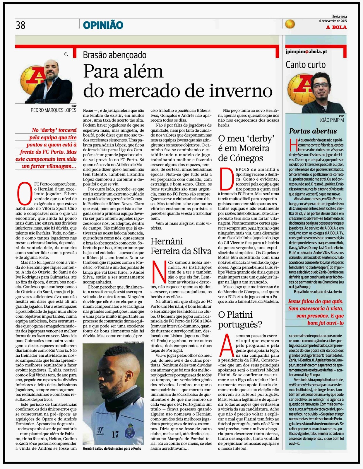 (sendo que, num blogue de 'um portista indefectível', obviamente que esta caixa é destinada preferencialmente a 'portistas dos quatro costados'. e até é certo que o "lápis", quando existe, é azul.)