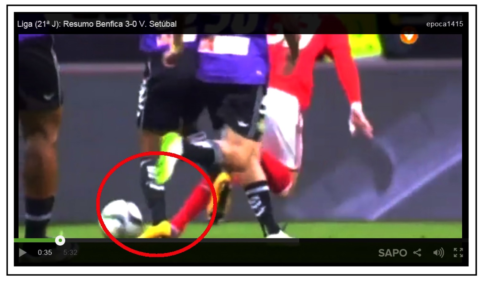 lance que ocorreu aos 39' minutos, antecedeu o segundo golo do 5lb, e que, pleas mesmas razões atrás apontadas, pode ser (re)visto em imagens GIF aqui (jogada corrida) e aqui (posteriores repetições).