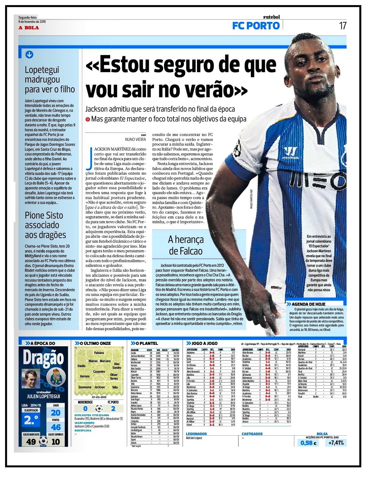 (i) é do senso comum que, após a renovação e/ou renegociação contratual com Jackson, esta será indiscutível e indubitavelmente a última época do colombiano no FC Porto;