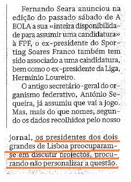antes de ir aos "finalmentes", também recomendo a leitura atenta da notícia sobre o encontro (nada) secreto entre os presidentes dos clubes mais emblemáticos do "Portugal da Segunda Circular®".