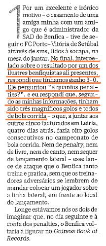 Miguel Sousa Tavares, em "querem de falar de 'penalties'?", coloca o dedo na ferida: se há forma de se melhor definir um «glorioso» adepto da agremiação de Carnide é pela forma como estes nos espicaçam e normalmente a destempo. eis (mais) um exemplo:
