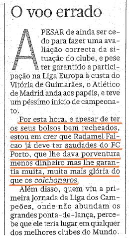 bem sei que já te dediquei um epílogo, a propósito da tua «mercenária» (que não só milionária) transferência paro o Atlético de Madrid.