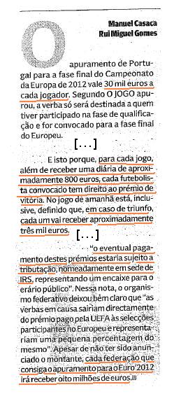 para além dessa notícia, de que cada jogador da selecção "vale 30 mil euros a cada jogador", publicada na edição do jornal OJOGO de ontem [Segunda-feira, 2011-11-14], e ainda na temática do amor à camisola, retenho a reportagem com o bósnio Besirovic, publicada na edição do pasquim da Travessa da Queimada de 11 de Novembro - não só pela sua convicção de que «o Futebol é a única alegria no país», mas principalmente pela "alegria" do seu filho Dino por um "certo e determinado" clube que nós cá sabemos.
