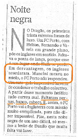 3) a crónica ao encontro com os ingleses e as notas atribuídas ao jogadores do FC Porto, assinadas por carlos vara, com especial destaque para o último parágrafo da primeira;