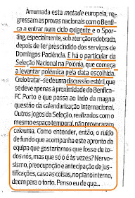 e já que abordei a questão de um grande amor, não posso deixar de me insurgir perante (mais) um editorial do sr. com apelido de intestino, com o título "da UEFA à Selecção", e em concreto pelo excerto que se segue: