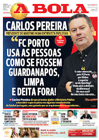 "ironias" à parte - pois o lampiónico joão nada bonzinho não é para este assunto chamado -, faço votos para que Vítor Pereira e os jogadores por ele escolhidos - que manterão «uma imensa actividade desportiva» pós-findar de época -, não sucumbam ante a pressão que se fará sentir no reduto do clube do guardanapo, e cuja capa que motiva esta expressão se recorda, pois assinala um momento ímpar na imprensa desportiva lusa: a primeira a ser concedida, pela «gloriosa» redacção do pasquim em causa, a um clube fora da ingerência da Segunda Circular e/ou que sugira um desaire futebolístico do nosso FC Porto.