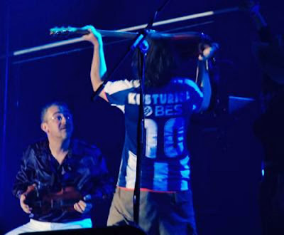 ResponderEliminarOlá velho tolas. O Kalu dos xutos já várias vezes vestiu as nossas cores, mas como eu só os vi em Queimas das Fitas ou Festivais, em que eu próprio me encontrava bastante "queimado", não me lembro de o ter fotografado... Outra que me lembro é o Tom Barman dos dEUS, que uma vez no Coliseu lhe atirei um cachecol do FCP e ele enrolou à volta da cabeça e ficou a música toda a cantar com aquilo na tola. Não sei se há registo mas foi engraçado. Mais não me lembro. Até já