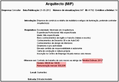 mas, por todas estas qualificações e conhecimentos adquiridos - que serão uma mais-valia para a dita, a todos os níveis -, a "recompensa" é de uns míseros quinhentos euros (deduzo que sejam ilíquidos)!!!