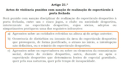 * consultando o referido "Regulamento de Prevenção e Punição de Manifestações de Violência", constato que fomos punidos devido a: