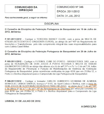 atente-se bem no teor do seguinte comunicado da Federação Portuguesa de Basquetebol: