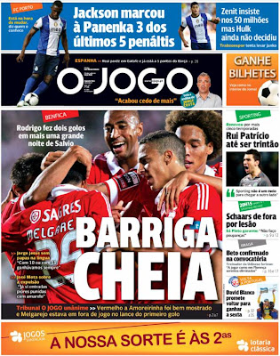 e é sobre estes últimos que a seguir abordarei como é enorme a gritante dualidade de critérios, com especial enfoque para a edição impressa do jornal OJOGO, do qual se presume ser "pró-FC Porto" mas mais não é do que um órgão de comunicação que consegue dar um pouco mais de destaque ao quotidiano azul-e-branco - e por «destaque» entenda-se mais do que as habituais duas singelas páginas dedicadas pela redacção do pasquim da Travessa da Queimada.