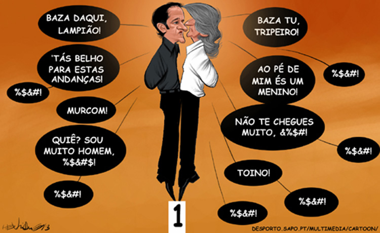 é um preciosismo, eu sei! uma paneleirice, talvez! mas assim será de ora em diante, pois fosse outra a cor envolvida em todo este (como epitetar?...) bzidróglio e quem rejubila com o nosso insucesso estaria a pavonear-se como virgem demasiado ofendida, não só por a «verdade desportiva» estar em causa, mas sobretudo porque é «intolerável e inqualificável» o seu estado de impunidade...