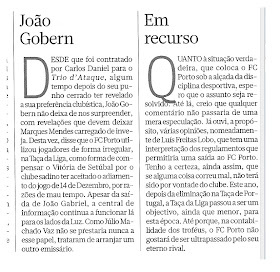 e, mantendo-me no dossier sobre o quotidiano do clube dos adeptos coisinhos, publicado na edição impressa de hoje, que é Sexta-feira, também não pude deixar de reparar que, mesmo depois de tão brilhantes elogios pelo serviço prestado (e superiormente executado), o prémio da (des)consolação coube a Vítor - jogador do Paços de Ferreira, que ambicionava a sua entrada nos quadros do 5lV - de Vítor. para já, permanece(rá) por terras do Vale do Sousa...