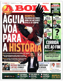 para lá da capa acima; do editorial "na UEFA, só jeBus" (da autoria de fernando guerra); do artigo de opinião "os factos e a sua interpretação" (de Paulo Teixeira Pinto); do dossier dedicado ao FC Porto (com destaque para as declarações do nosso querido líder a propósito da "ex-taça da bjeKa"®); da entrevista (nada) surpreendente a Manuel Cajuda, talvez recomende a leitura atenta ao destaque dado às qualidades futebolísticas do Papa Francisco I.