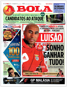 para lá da capa acima, onde lanço o desafio de conseguires encontrar a referência ao nosso clube do coração; dos artigos de opinião "à espera de Moutinho" (do nosso caríssimo Rui Moreira, na sua rubrica habitual "PLENOS PODERES"), e do "gralhas & pesca" (de Paulo Teixeira Pinto); da entrevista (plena de soberba) do luís grande, onde destaco a seguinte passagem: