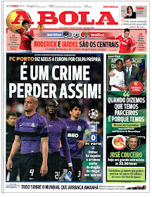 sim!, que exceptuando o meu ambiente familiar e de Amigos mais próximos, nos dias que correm, o Futebol Clube do Porto é o que ainda me consegue trazer alegrias a algum cinzentismo no meu dia-a-dia - pelo que aquela eliminação foi bem mais do que um soco de um pugilista de renome no meu frágil estômago. como o escrevi, foi o suficiente para ter ficado com um "melão" de todo o tamanho e que persiste, ao ponto de ainda não conseguir passar por debaixo da Ponte da Arrábida e (sequer!) ainda ser incapaz de esboçar um sorriso e por mais tímido que seja.