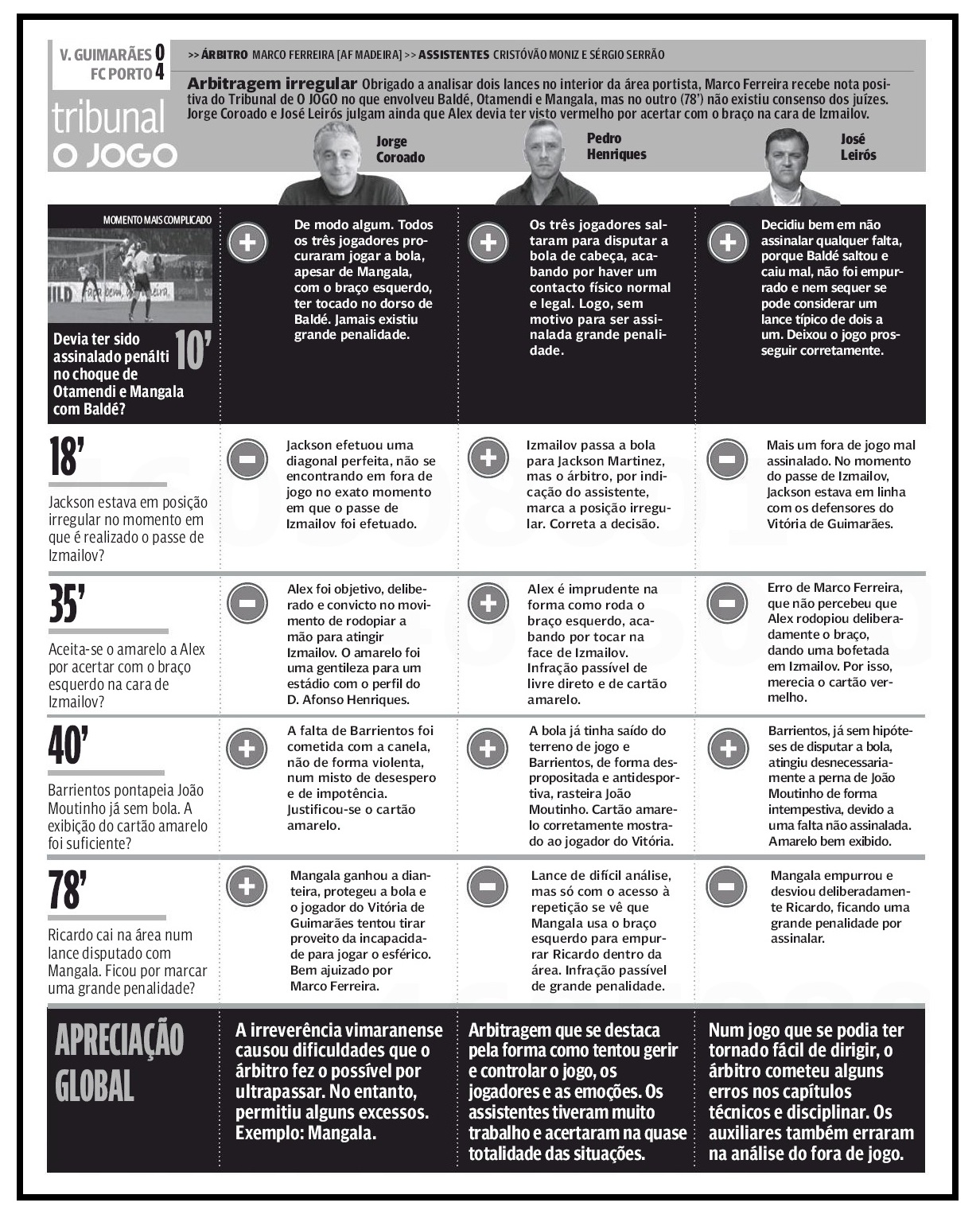 no que às arbitragens diz respeito, só a de Braga é que foi unânime e não mereceu dúvidas ao trio de ex-árbitros em causa (apesar de eu considerar que não houve motivos para se assinalar grande penalidade...).