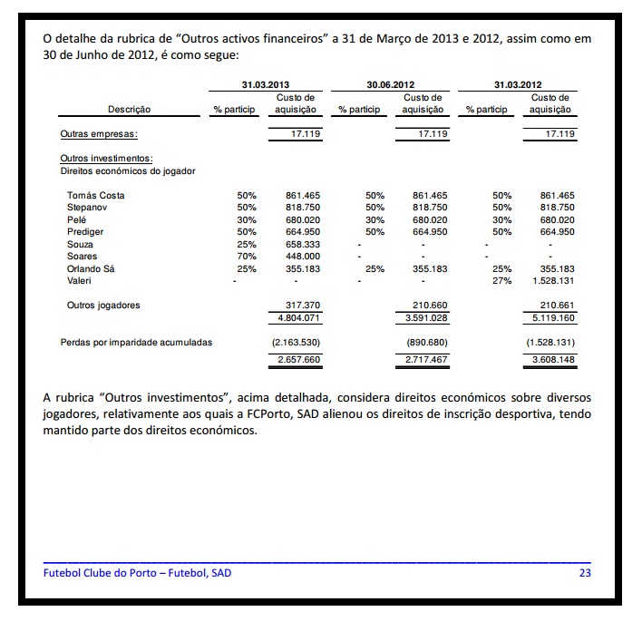 Significa que já não temos qualquer Direito Desportivo sobre aqueles jogadores mas, no caso de serem transaccionados, as percentagens ali referidas, são Activos da SAD.
