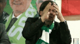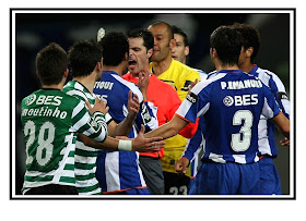 antes e para tua informação, confirmo que as ditas imagens foram tiradas enquanto decorria o encontro de ontem, no reino dos viscondes falidos de Alvaláxia, para a "ex-taça da bjeka"®. e que não houve qualquer "manipulação photoshópica"® nas mesmas. e que, numa delas, a sua reacção foi espontânea ao remate do Ghilas. e que tirou o adereço, que pertence ao pai, por sua livre e espontânea vontade. e que, para ele, uma partida de futebol é o «goolho» e um golo é sinónimo de «Pooo'too». e que já não fica indiferente à melodia do hino do nosso clube, graças às noites e/ou madrugadas em que o embalei nos meus braços. e que é mesmo tudo verdade e que não estou a mentir e/ou deturpar factos e/ou inventar situações que não aconteceram - pois que posso ser tudo menos lampião e/ou calimero.