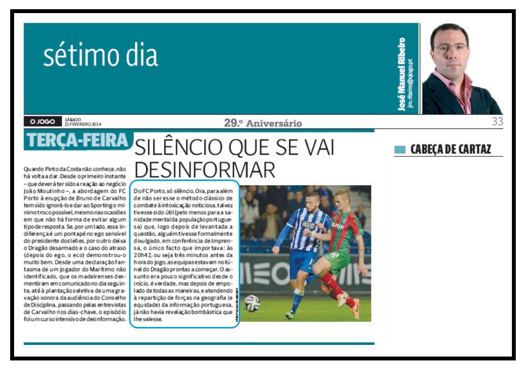 e, desde já, refiro que a edição impressa do pasquim da Travessa da Queimada, deste Sábado, é mesmo um "fartote" em mal-dizer o bom-nome, o prestígio e a história centenária do nosso clube do coração, fazendo jus à minha mais recente revolta acerca de quem por lá "gravita".
