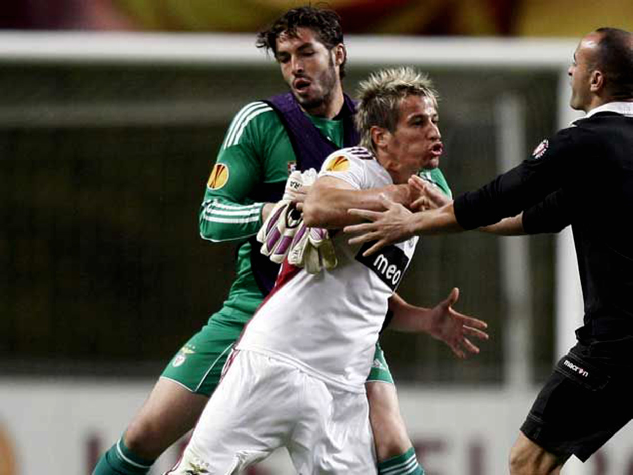 para todos estes badamecos (ia escrever bardamerd@s, mas achei demasiado ofensivo...), logo a seguir ao «gosto» do "faceboKas"®, em «'no pare, sigue, sigue'», segue uma brevíssima fotogaleria com imagens que, "não sei porquê", mas recordaram-me um episódio em tudo similar ao de Quaresma, só que com um protagonista afecto a uma agremiação dita «gloriosa», estávamos em Maio de 2011...