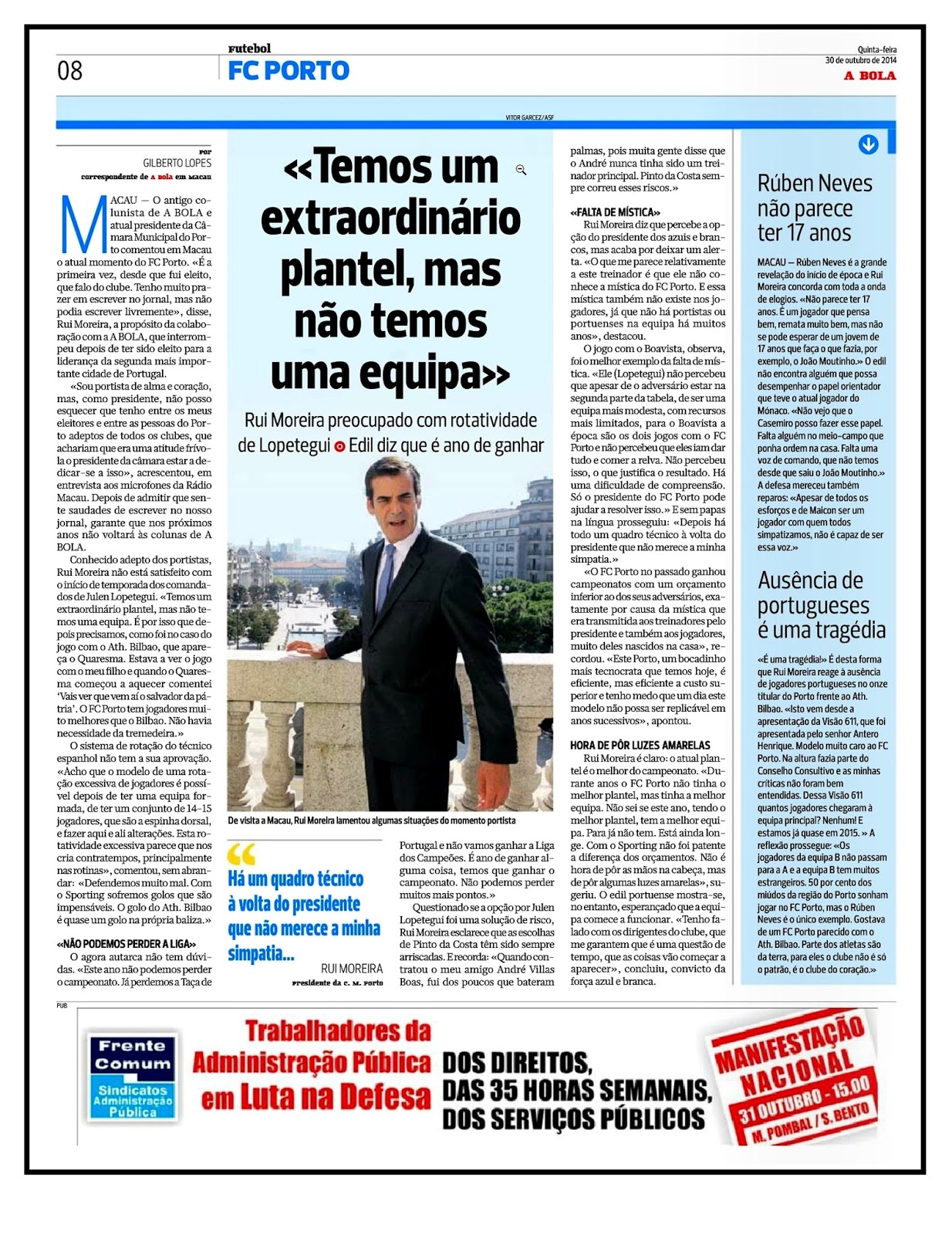 agora, a pertinência desta "entrevista" e o favto de as respostas terminarem no jogo ante o Bilbao... eu sei que ele há cá cada coincidência... mas como eu não acredito nas ditas cujas...