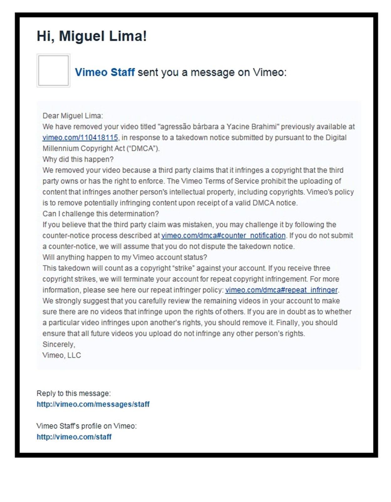 este meu contentamento já não se repercute no que me andam a fazer com a publicação do vídeo da agressão que existiu ao Brahimi. no início foi no 'youtubiu'®; agora foi no Vímeo...