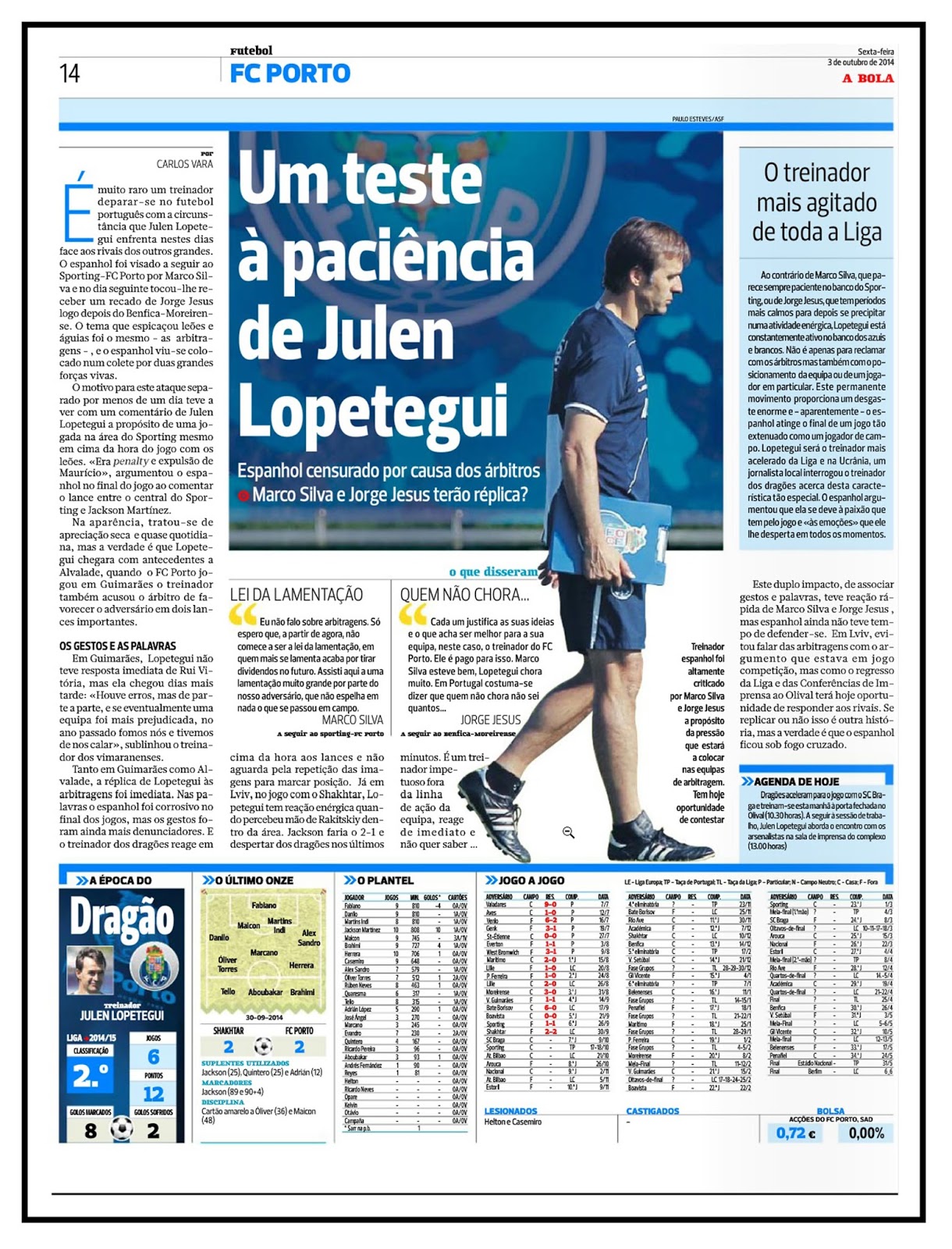 ainda sobre a partida ante o Shakhtar, acho curiosíssimo como a mensagem que passou e após se conhecerem os desaires dos clubes da Segunda Circular, é a de que o nosso FC Porto «tem fáceis adversários no seu grupo» e que «os adversários são acessíveis».